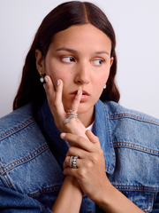 A Diamond White Gold Snake Ring with a Marquise cut diamond on the body head, two Round Brilliant cut sapphire eyes & a Round Brilliant cut diamond on the tail, in 18K white gold.