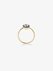 A Diamond & Blackened Gold Button Back Ring with a 1.04ct Round Brilliant cut diamond, set in a Georgian style cut-down setting in 18K blackened white gold & yellow gold.