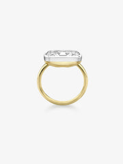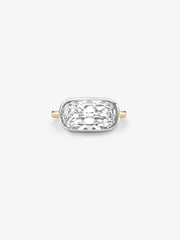 An East-West Diamond Capsule Ring with a 5.05ct East-West Cushion cut Diamond, set in a rub over setting in 18K white gold & yellow gold.