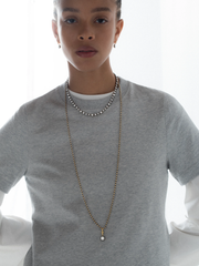 A Ball n Chain Diamond Pendant with a 2.25ct Round Brilliant cut diamond, set in a Georgian style cut-down setting in 18K blackened white gold & yellow gold.