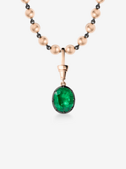 A Ball N Chain Emerald Pendant, set with a 4.97ct Oval shaped emerald in a Georgian style cut-down setting, in 18K blackened white and rose gold.