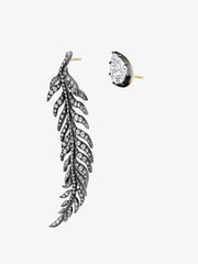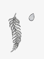 A pair of one of a kind Diamond Fern Earrings, with a 4.30ct Pear-shaped diamond and a 0.84ct Oval cut diamond, set in a Georgian cut-down setting, and 6.91ct pave set diamonds,