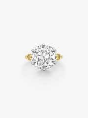 A Georgian Loop Ring with a 7.03ct Cushion cut diamond, set in a talon claw setting in 18K white gold & yellow gold.