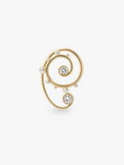 A Single Jessica McCormack & Haas Brother’s Coil Me Baby Ear Cuff with two Round Brilliant cut diamonds & a set of freshwater pearls, set in a rub over setting in 18K yellow gold.