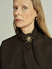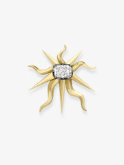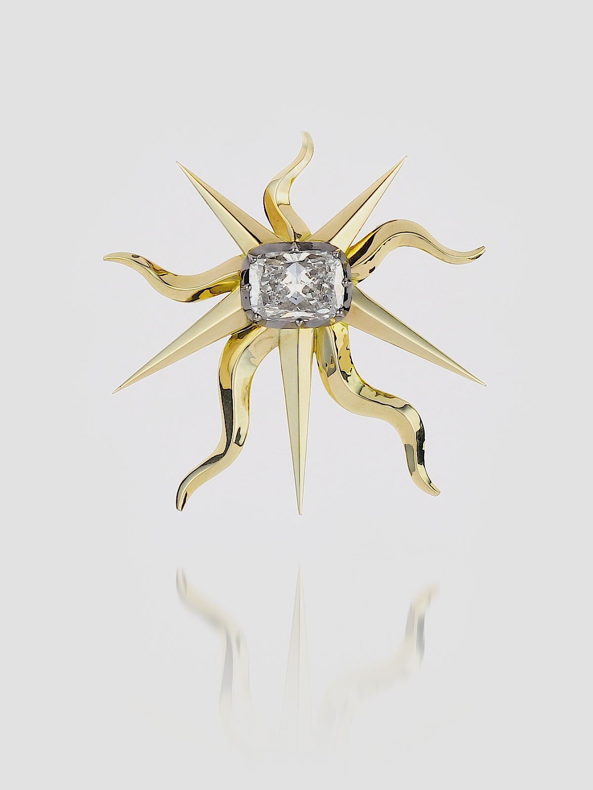 An Orbit 7.01ct Cushion Cut Diamond Brooch, with a 7.01ct Cushion Cut diamond, set in a Georgian style cut-down setting in 18K blackened white gold & yellow gold.