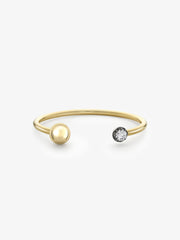 An Orbit Yellow Gold & Diamond Sphere Bangle, with one yellow gold sphere & one 0.90ct Round Brilliant Cut diamond set in a Georgian style cut-down setting, in 18K blackened white gold & yellow gold. Total diameter of the bangle is 63mm.