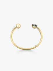 An Orbit Yellow Gold & Diamond Sphere Bangle, with one yellow gold sphere & one 3.42ct Round Brilliant Cut diamond set in a Georgian style cut-down setting, in 18K blackened white gold & yellow gold. Total diameter of the bangle is 64.9mm.