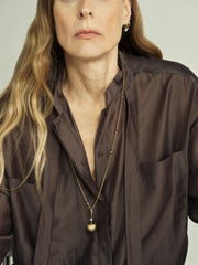 An Orbit Yellow Gold & Diamond Star-Set Sphere Pendant, with one 0.40ct Round Brilliant cut diamond set in a Georgian style cut-down setting followed by a sphere with a constellation of 0.62ct diamond-studded stars in a grain setting, in 18K blackened white gold & yellow gold. The diameter of the sphere is 19.6mm.