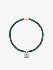 A Tempest Emerald & Sapphire Necklace, set with 38.70ct Round Brilliant cut sapphires & 27.40ct Round Brilliant cut emeralds, in a claw setting, in 18K blackened white and yellow gold. Total necklace length is 16 3/4" inches.
