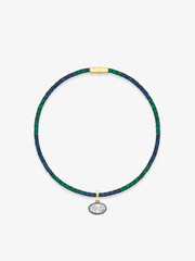 A Tempest Narrow Emerald & Sapphire Necklace, set with 19.30ct Round Brilliant cut sapphires & 13.20ct Round Brilliant cut emeralds, in a claw setting, in 18K blackened white and yellow gold. Total necklace length is 16 3/4" inches.